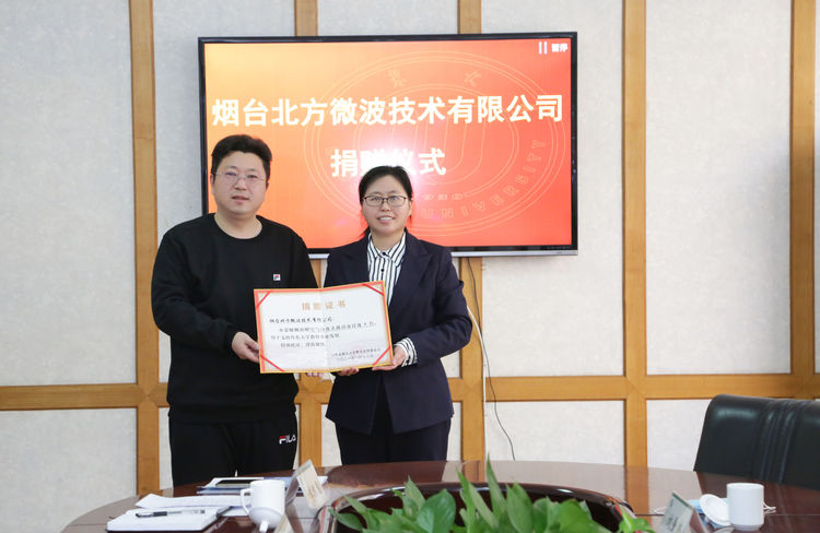 校友辦于欽凱主任為煙臺北?微波技術(shù)有限公司頒發(fā)捐贈證書
